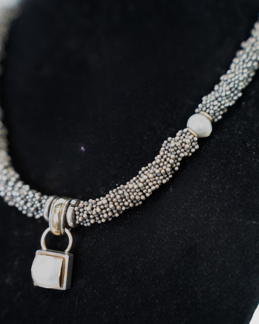 Michael Dawkins Silver Mini Beaded 14K Gold Accents Freshwater Pearl Necklace