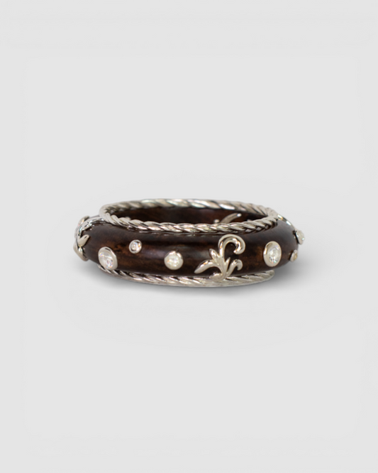 Dominique Auriemtis Brown Wood Bangle w/ Silver & Rhinestone Details