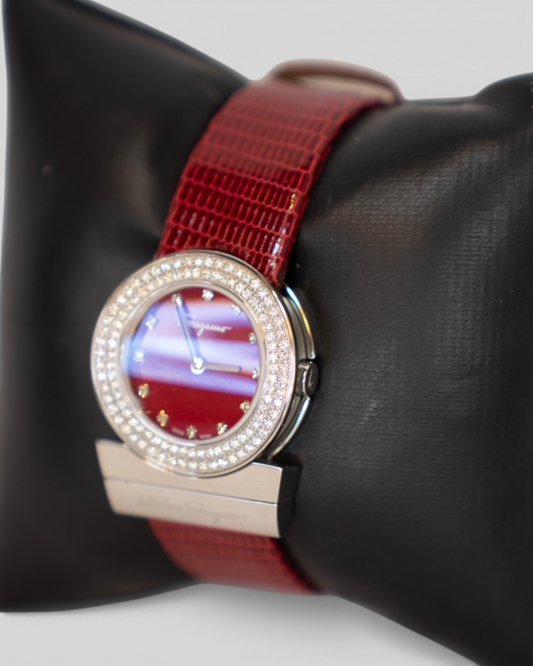 COMES WITH BOX - Salvatore Ferragamo Red Leather Watch w/ Diamonds