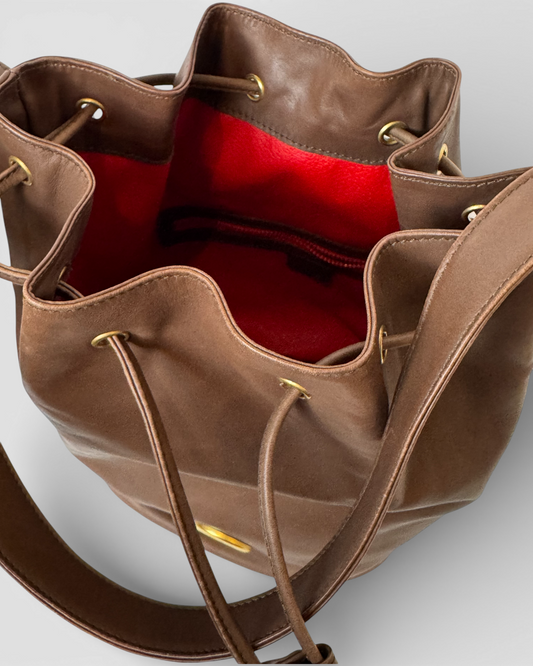 Celine Vintage Brown Leather Drawstring Bucket Bag