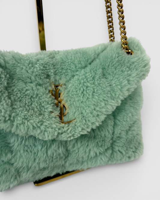 YSL Iced Mint "Loulou Puffer Shearling" Bag w Gold Chain