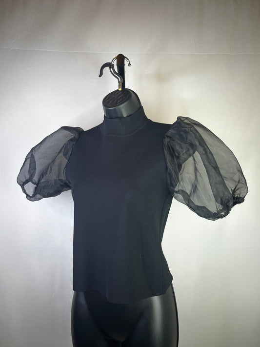 House of Harlow Black Knit Short Puff Sheer Sleeve Turtleneck Top