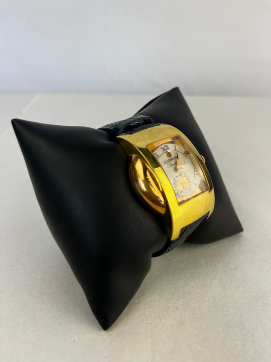 COMES W BOX - 1990's Corum 18k Two Tone Rose Gold & Gold "Symbiose" By R. Ventrella Automatic Watch w Black Leather Band