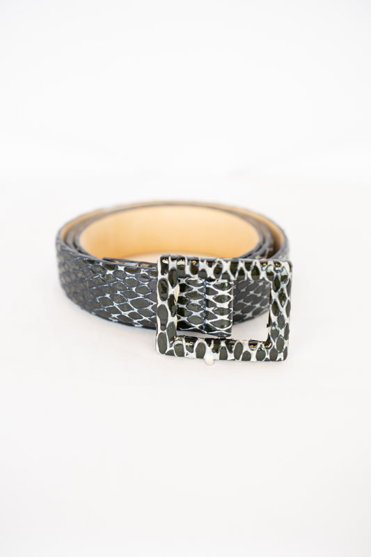 St. John Leather Black & White Genuine Snakeskin Belt w Square Buckle