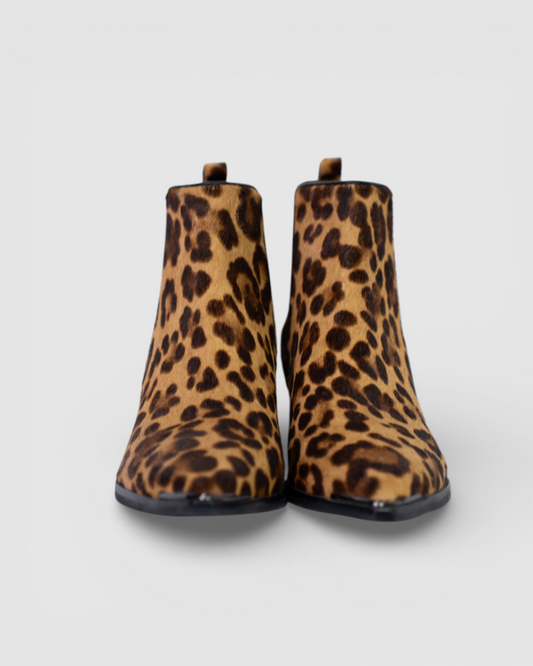 Marc Fisher Mohair Cheetah Print Pointed Toe Booties w Elastic Slit on Sides
