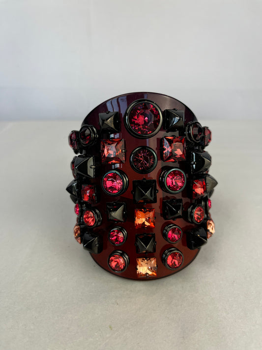 1980's Gucci Burgundy Plexiglass Crystal & Resin Large Studded Cuff Bracelet
