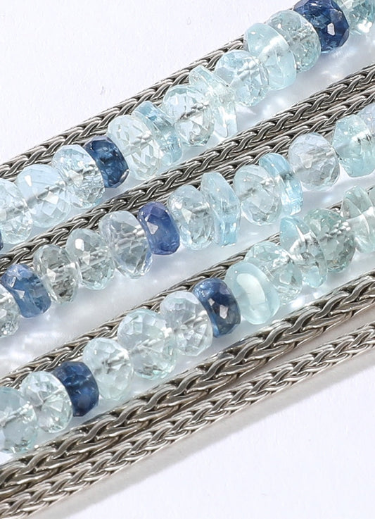 John Hardy Silver Multi-Row Aquamarine & Kyanite Bracelet with Pusher Clasp NWT