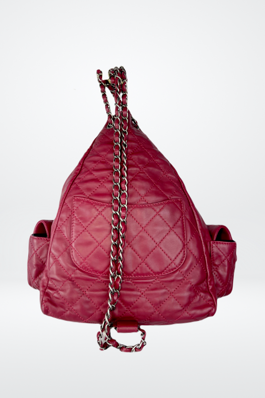 Chanel Red Wine Quilted Drawstring Double Pocket Backpack