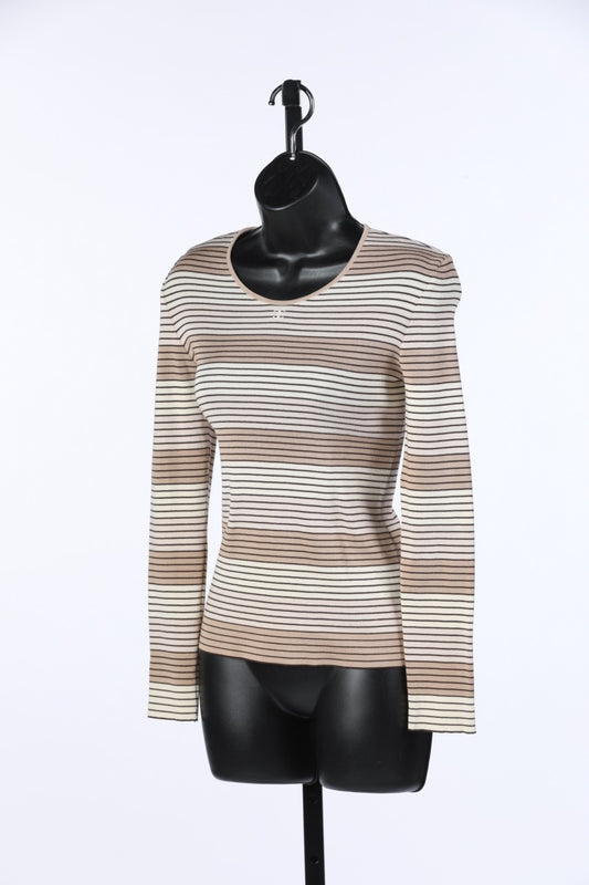 Chanel Multi Color Beige Stripe Long Sleeve Top w Embroidered CC Logo