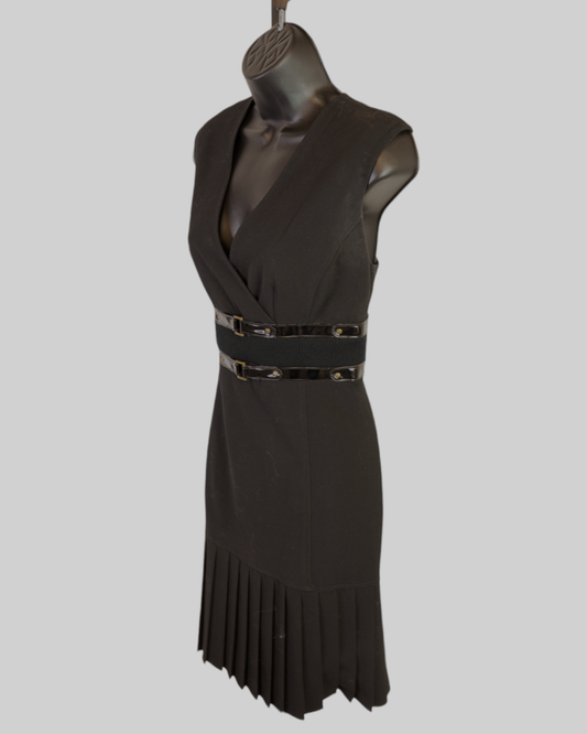 Tracy Reese Black Sleeveless Double Buckle Pleated Hem Knee-Length Dress
