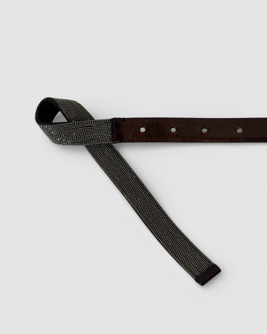 W BAG- Brunello Cucinelli Brown Leather Signature Bead in Twist Belt