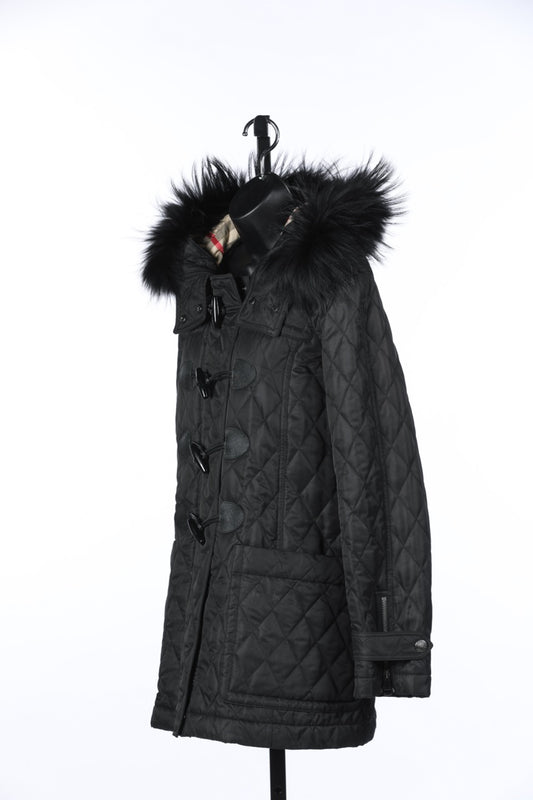 Burberry Brit Black Quilted Coat w/ Fur Lined Hood