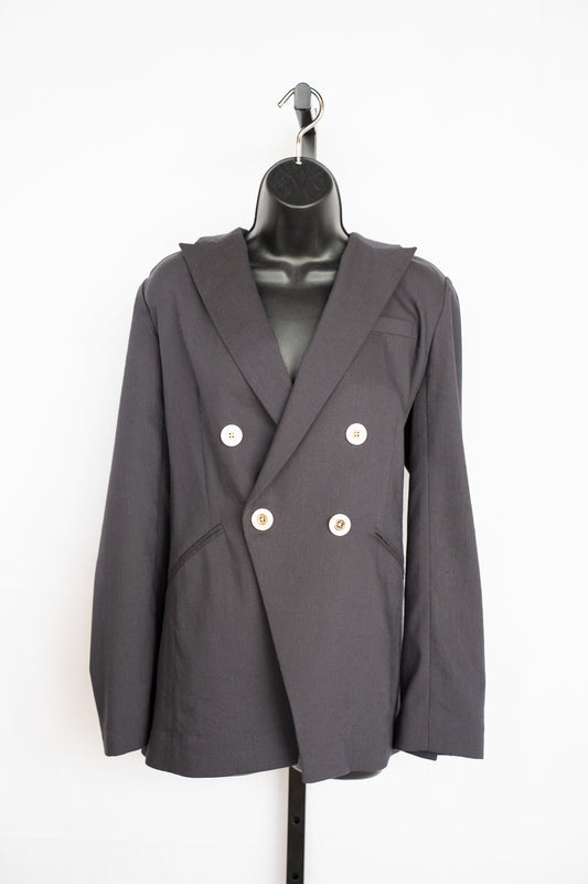 Veronica Beard Linen/Wool Blue Blazer Jacket w Pearl & Gold Buttons