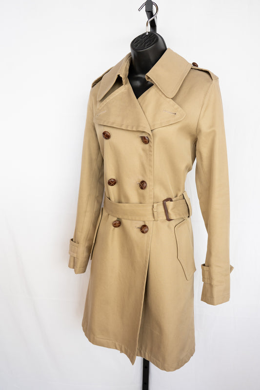 Burberry Khaki Woven Leather Button Up Trench Coat w Belt