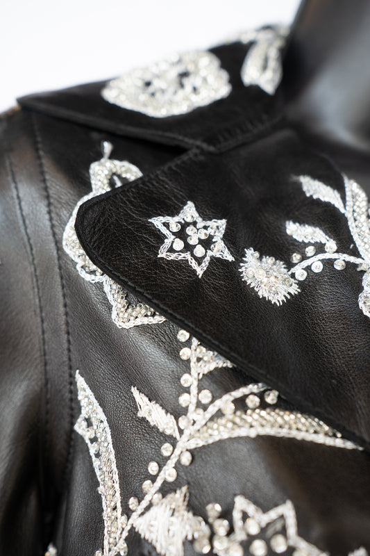 Dolce & Gabbana Black Leather Beaded Leather Jacket