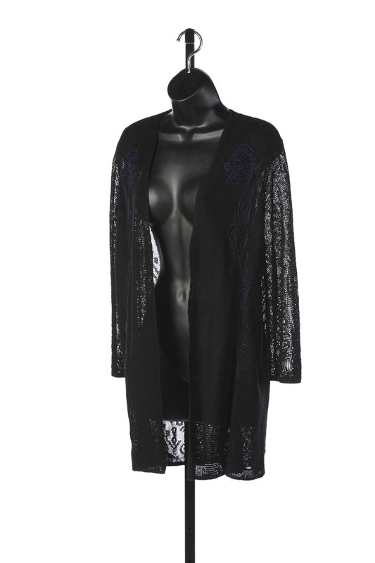 Escada Black Open-faced Cardigan Sweater w/ Blue Woven Detail