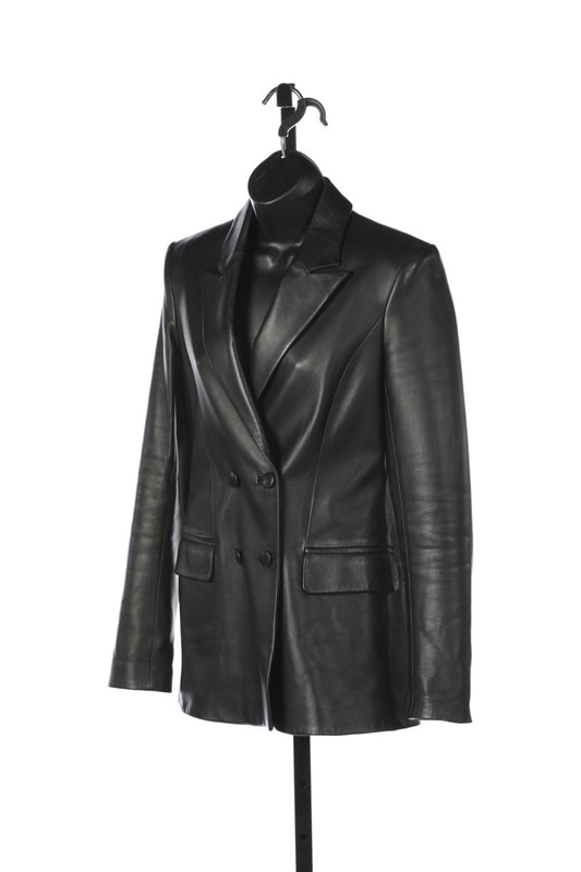 OFF-WHITE Black Leather Double Front Pocket & Closure Blazer w Logo on Back