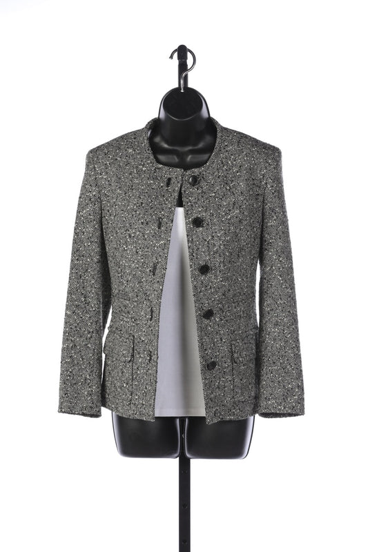 Escada Black, White, and Grey Pebble Tweed Button Up Jacket