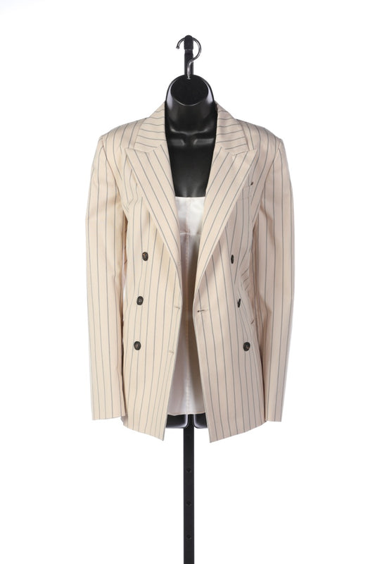 Brunello Cucinelli Sand w/ Navy Pinstripes Double Breasted Cotton Blazer
