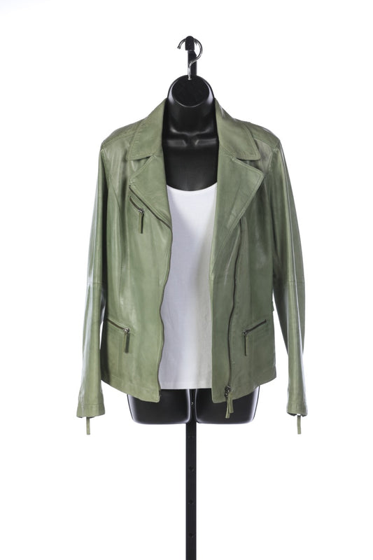 GMS-75 for Axel's Leather Light Olive Green Multi Zip Jacket w Floral Embroidered Patch Interior