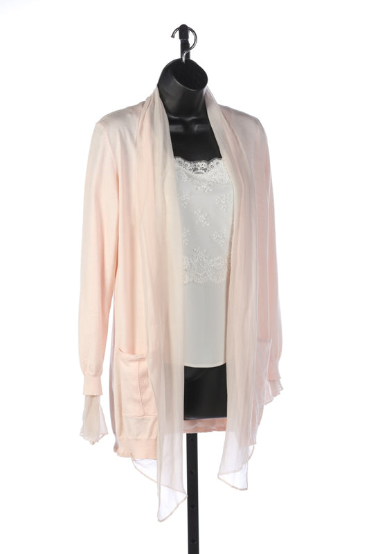 Brunello Cucinelli Light Pink Cotton Open-Faced Cardigan Sweater with Silk/Cotton Lining