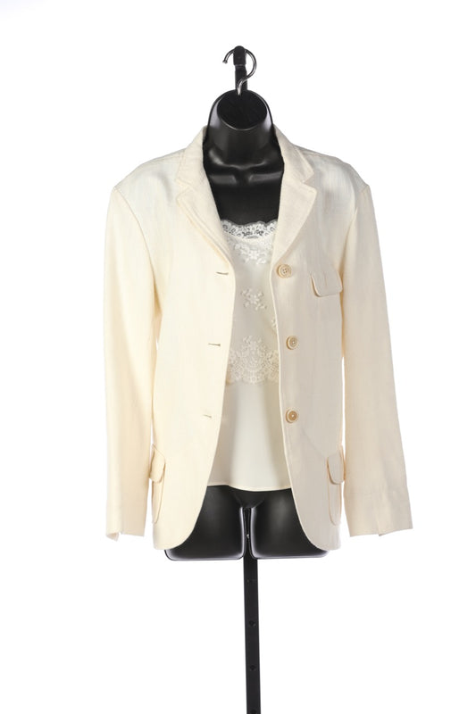 Jil Sander Cream Linen Collared Button Up Jacket w Pockets