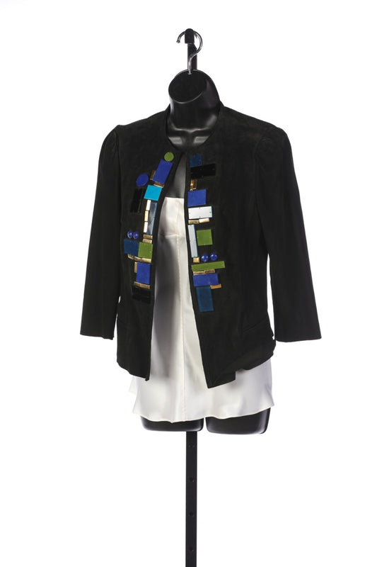Roberto Cavalli Black Suede Multi Crystal Open Face Jacket