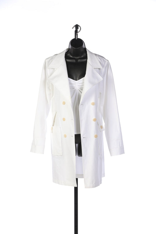 Armani Collezioni White Double Breasted Button Down Trench Coat w/ Belt