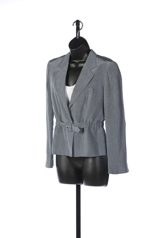 Giorgio Armani Blue/Grey Single Button Blazer w/ Belted Detail