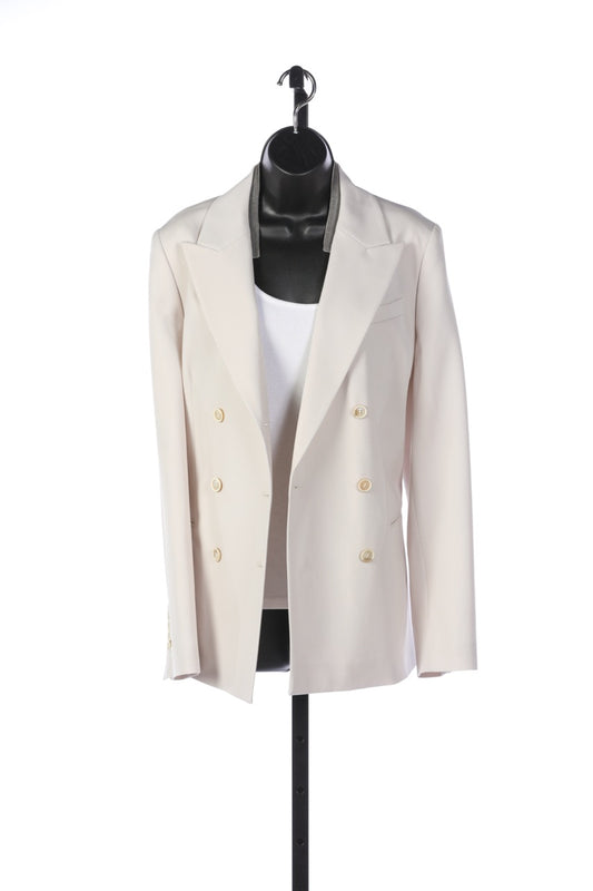 Brunello Cucinelli Wool Beige Button Up Blazer w Signature Rhinestone Collar NWT