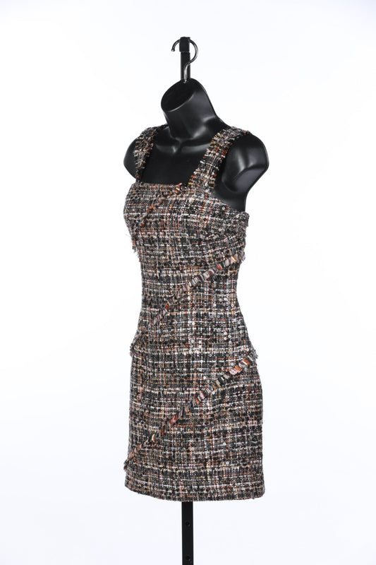 Ramy Brook Multi-Brown Tweed Dress w/ Flower Sequins & Removable Straps