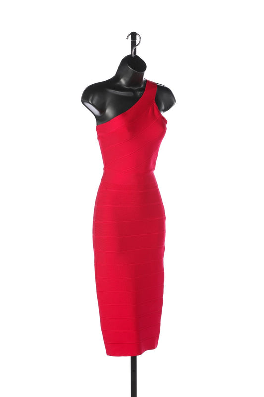 Herve Leger One Shoulder Knee Length Bandage Dress NWT