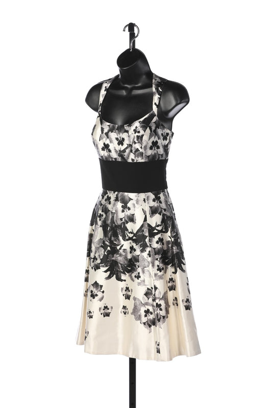 Prabal Gurung Floral Scoop Neck w Black Waistband Knee-Length Dress