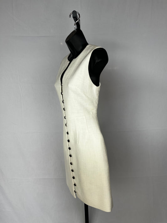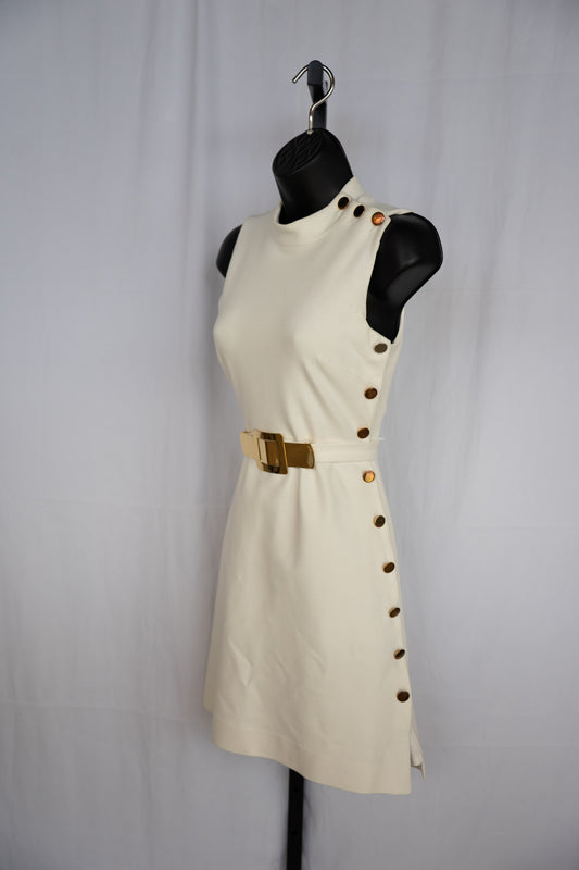 Milly White Mock Neck Sleeveless Gold Button Detail Mini Dress w Belt