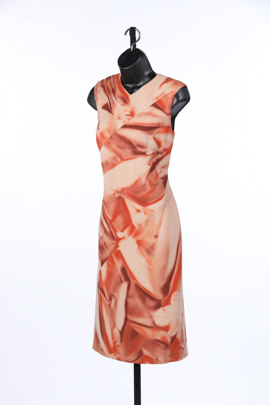 Bottega Veneta Rust and Tan Abstract Printed Sleeveless Dress