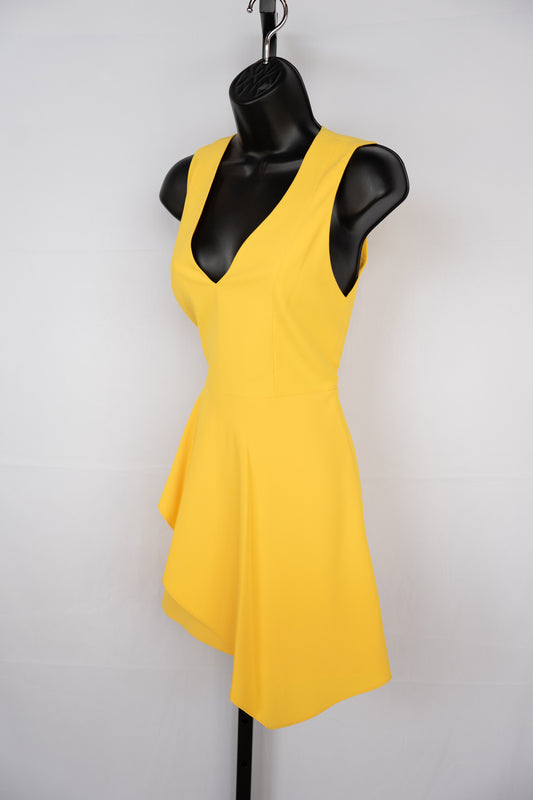 Alice + Olivia Yellow Sleeveless V-Neck Mini Dress w Layered Ruffle Hem