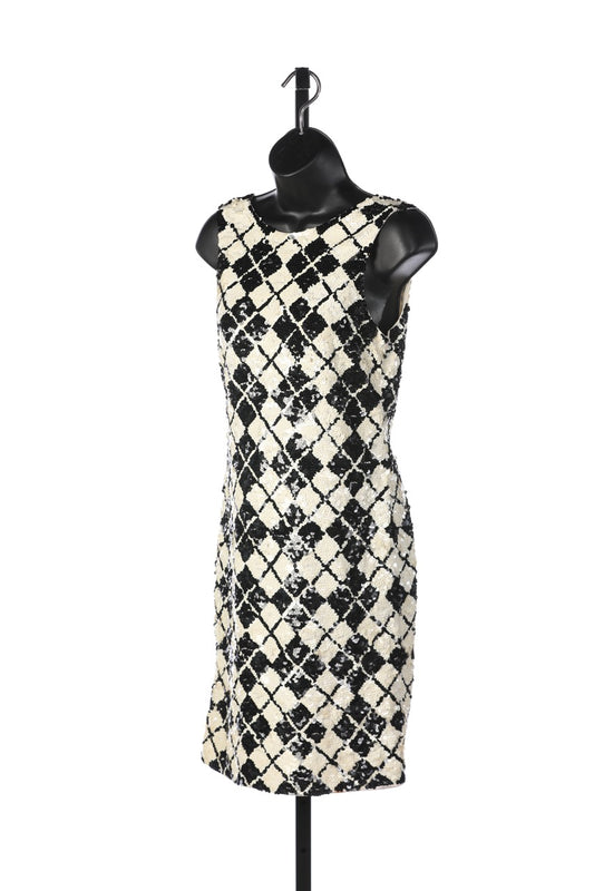 Black Tie White & Black Sequined Diamond Print Knee-Length Mini Dress