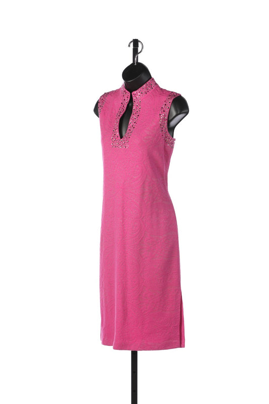 St. John Hot Pink Sleeveless Knee-Length Dress w/ Pink Rhinestone Details