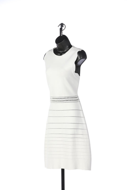 MICHAEL Michael Kors White Mesh w Circular Fringe Short Sleeve Knee-Length Dress