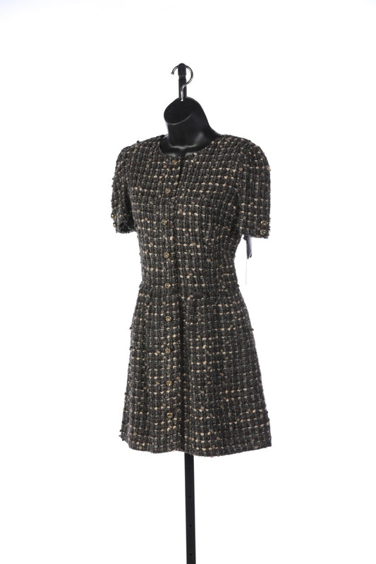 Dolce & Gabbana Brown & Grey Tweed Short-Sleeve Dress w/ Gold Buttons NWT