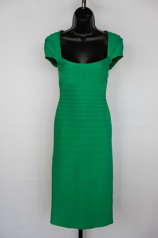 Herve Leger Green Cap Sleeve Open Back Knee-Length Bandage Dress