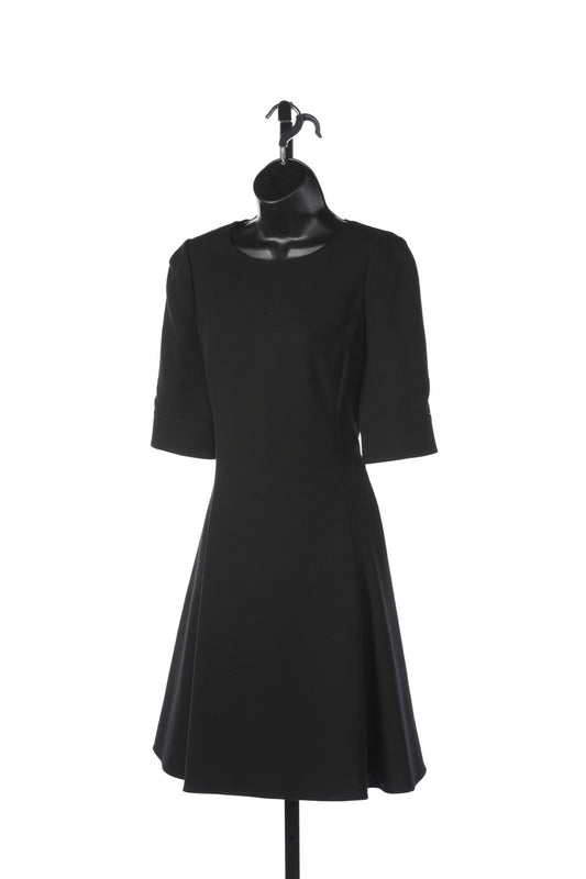 Dolce & Gabbana Black Crew-Neck Half-Sleeve Knee-Length Dress w Rhinestone Cluster on Elbows NWT