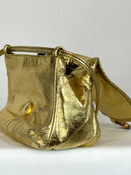 Vintage Loewe Gold Metallic Crossbody Flap Bag