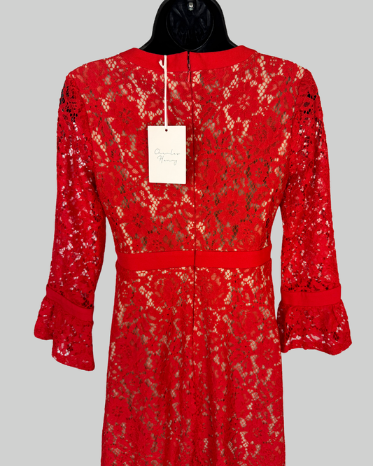 Charles Henry Red Floral Lace V-Neck 3/4 Bell Sleeve Knee-Length Dress NWT