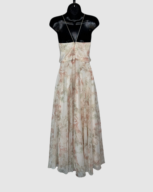 Jenny Yoo White Pink Floral Sleeveless V-Neck X-Back Maxi Dress