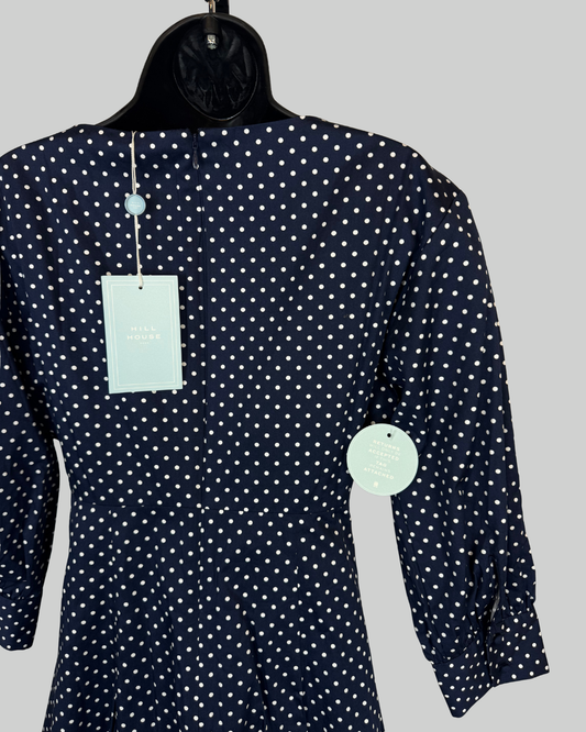 Hill House Navy White Polka Dot 3/4 Sleeve Fit & Flare Mini Dress NWT