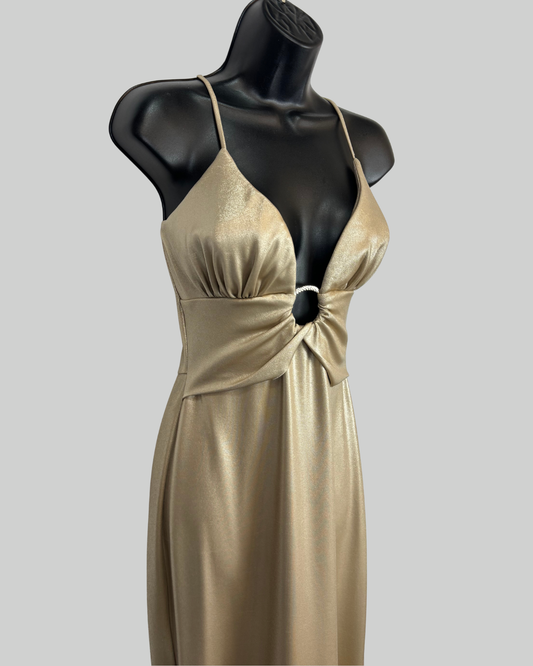 Chiara Boni Gold Shimmer V-Neck Circle Mid Sleeveless Midi Dress NWT