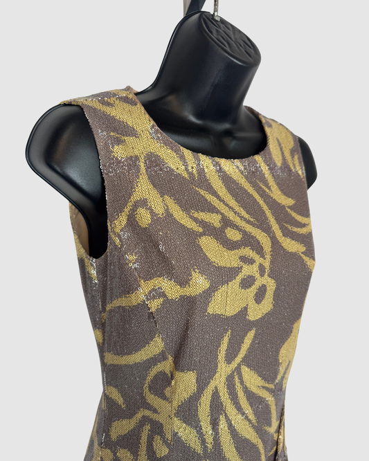 Custo Barcelona Grey Green Floral/ Snake Print Sequin Sleeveless Mini Dress