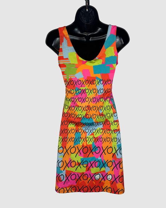 Volted Design Neon Orange Pink Multicolor Print Sleeveless Fitted Mini Dress