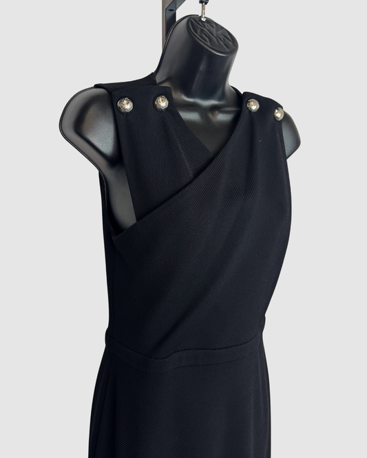 Gucci Black Ribbed Cross Front Sleeveless Knee-Length Dress